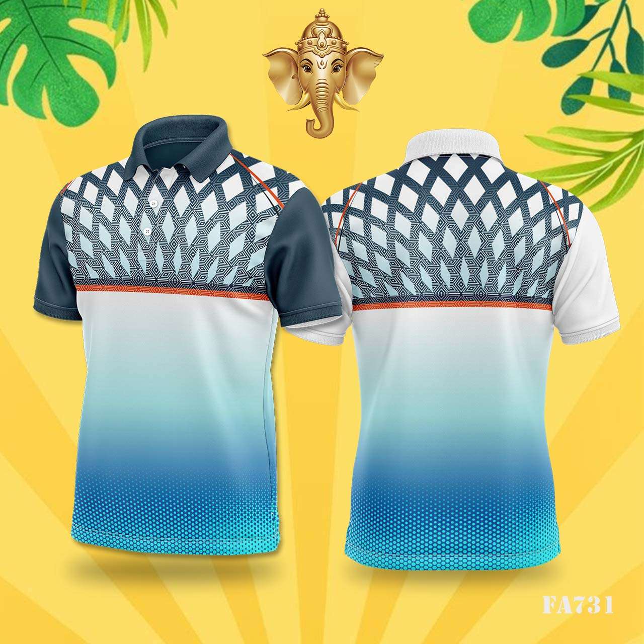 FA731 Blue & Orange Geometric Halftone Festival Jersey Design Sublimation for more visit imgecart.com