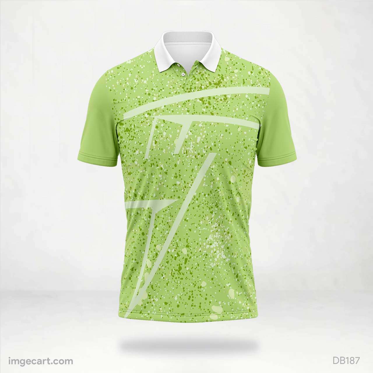 DB187 Light Green Cricket Jersey with White Abstract Lines and Splatter. Sublimation for more visit imgecart.com